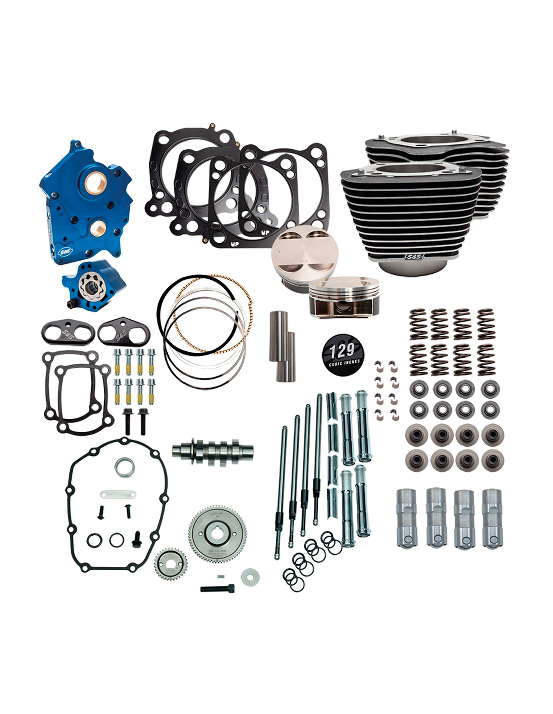 The S&S Power Package is the ideal combination of performance and savings, designed to transform your Milwaukee Eight without breaking the bank. For the latest generation HD's, S&S is packaging their bolt-in Big Bore kits with a 550 cam, cam plate and high flow oil pump as well as valve springs, lifters and pushrods. All kits can be installed without machining the crankcase and are available with gear or chain drive cams and are designed to make big, reliable power.