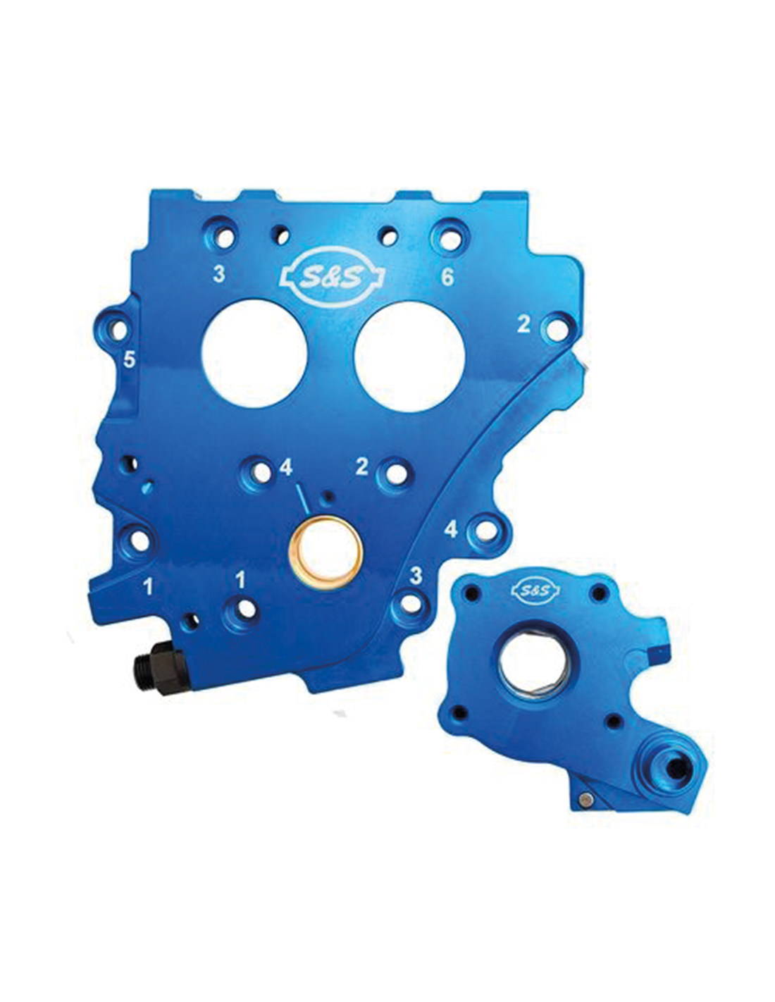 If motor oil is the lifeblood of an engine, then the oil pump is its heart. If your engine needs a transplant, the S&S three stage oil pumps are a great solution for worn out or destroyed stock units. Common causes of stock pump failure are debris and excessive pinion shaft run out. The S&S TC-3 oil pumps are much less likely to be damaged by either. They pump and scavenge way more oil than stock. Pumps feature three stages for consistent pressure and reliable scavenging, separate scavenge sections for flywheel cavity and cam chest without interference, and screens and magnetic traps to help protect the scavenge rotors from debris. The S&S design tolerates more pinion shaft run out without damage. As you have that motor apart anyway it would be a good time to install a new S&S TC3 forged cam support plate too.