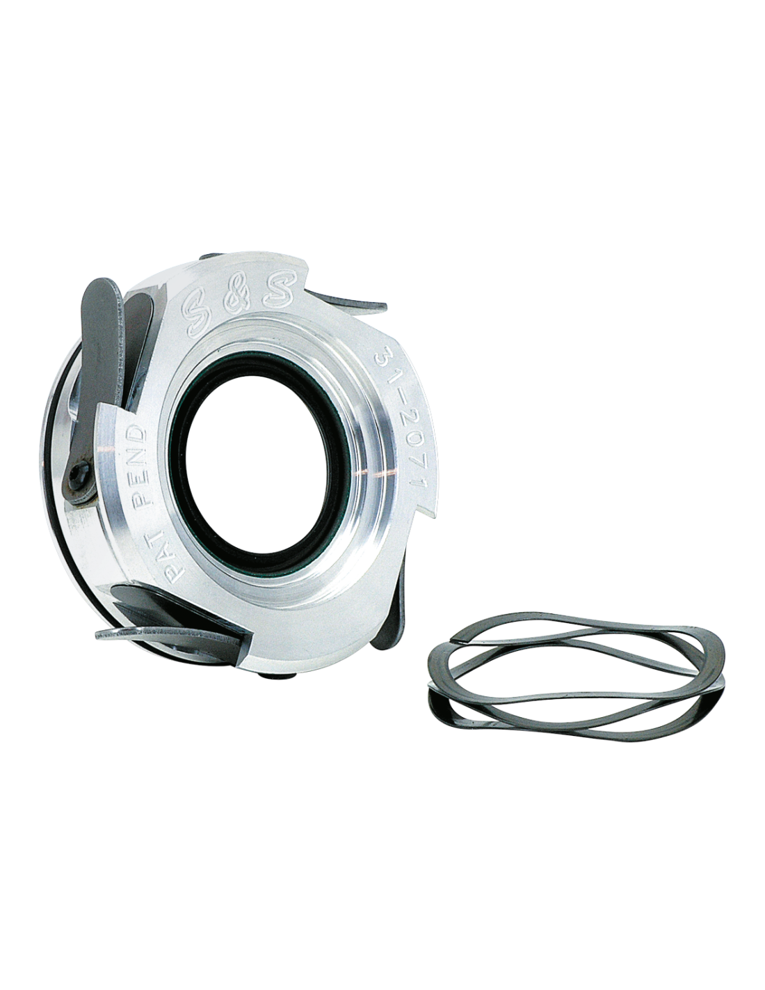 Patent pending reed valve crankcase breather from S&S that really helps to resolve oil carry over problems in Twin Cams. Breather consists of a machined billet aluminum body with four steel reed valves. The valve body slides over the pinion shaft and inside the pinion bearing bore, and is contained between the pinion bearing outer retaining ring and the oil pump. The reed valves allow oil and mist to escape from the crankcase, but not allow them to reenter. Two versions available, one that fits 1999 thru 2002 Twin Cam "A" engines, the other to fit 2003 to present Twin Cam "A" engines. These breather valves are not available for Twin Cam "B" engines as used in Softail models.