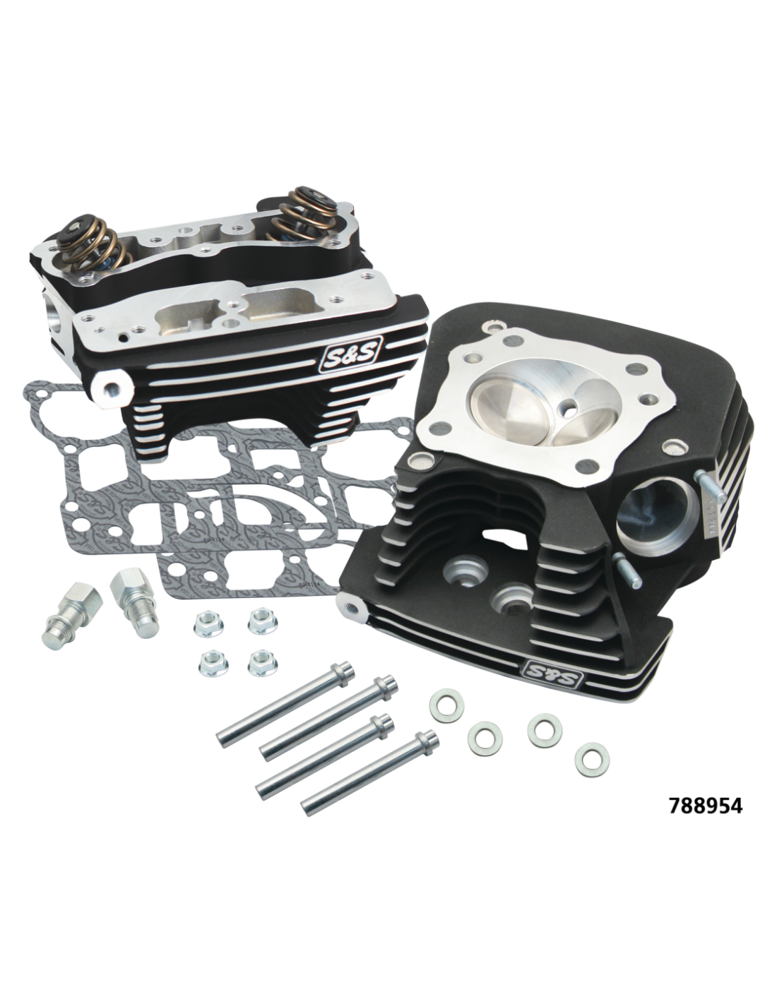 These S&S Super Stock high performance cylinder heads are designed for 2006-2017 Twin Cam engines with stock cylinder head pattern. These ported heads with larger than stock intake and exhaust valves are great for stock 88CI through 110CI motors, including Big Bore and stroker applications. The 89cc heads, for example, have a 45% higher flow rate than stock heads. Heads come in pairs and ready to install with valves, valve guides and valve springs for use with up to .650" lift cams in place. Also included are four longer than stock cylinder head bolts, the other four are to be re-used from the original engine. Kits can be installed with stock rocker boxes with the included S&S rocker base gaskets and are compatible with stock manifolds and stock or stock-replacement exhausts.