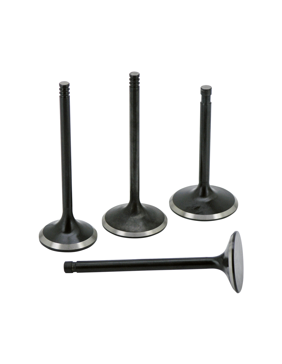 These superb valves are one piece forged from a racing grade stainless steel alloy. The liquid nitriding process creates a valve that is smoother and stronger than traditional OEM or replacement valves. Stems are centerless ground to a micro finish for a longer life and feature a 45 degree angle below the lock groove to facilitate valve seal installation. All AV&V Extreme Duty valves are black nitride coated. Valves for 2005 to present Twin Cams are also available in a hard chrome version.