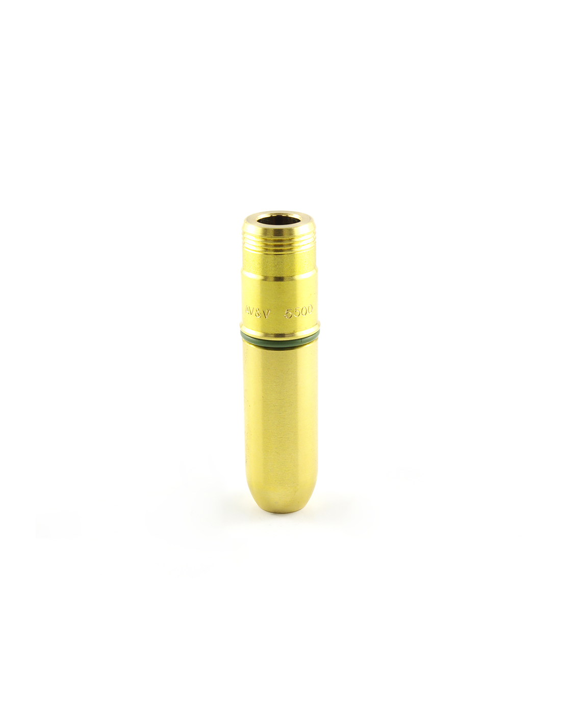 AV&V's Manganese bronze alloy allows you to fit the valve at a tighter clearance for better heat dissipation, longer life and quieter engine. They are all CNC machined and feature special Hi-temperature Viton O-ring to prevent oil infiltration between guide and head, tapered and radiused nose for easier installation and better air flow, a unique Super Grip valve seal section for use with either OEM style or Viton seals. Their unfinished inner diameter is ready to be easily finished with AV&V's Carbide reamers.