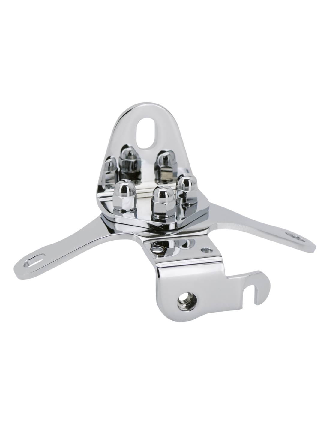 Chrome plated replacement top motor mount that also holds your enrichener cable and horn. The top motor mount kit fits carburetor equipped Softail models from 2000 thru 2005. The base only fits carburetor equipped Touring models from 1999 thru 2005. Comes complete with chrome plated hardware.