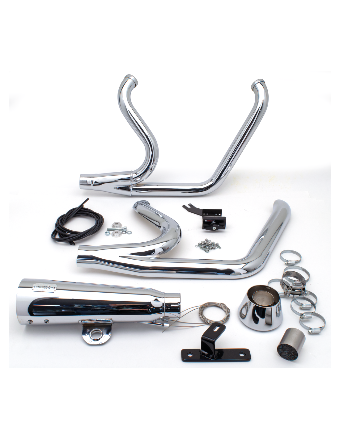 Fits 2018-2020 Softail FLDE Deluxe, FLFB & FLFBS Fat Boy, FLHC & FLHCS Heritage, FLSB Sport Glide, FLSL Slim, FXBB Street Bob, FXFB & FXFBS Fat Bob, FXLR & FXLRS Low Rider and FXST Standard (Euro-4), Shorty system, chrome