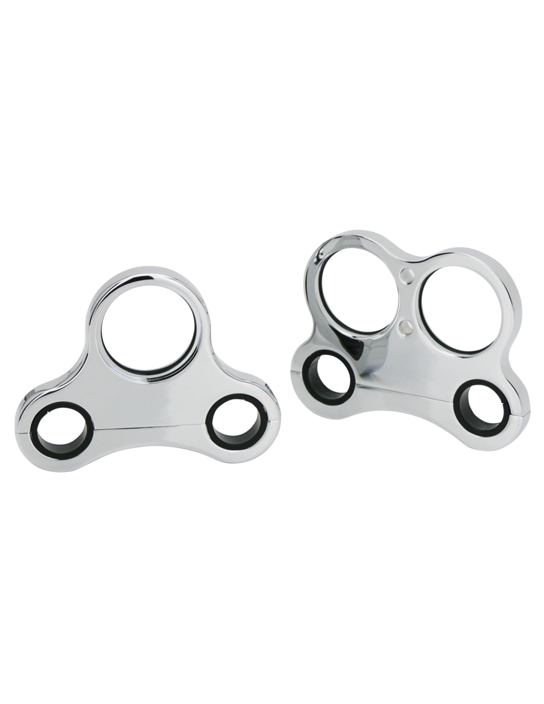 Designed to bolt straight on to any 1" and 1 1/4" diameter T-Bar style handlebar and ready to take 48mm diameter gauges. Available for use with a single or two gauges and plain or drilled to take 2 control lights. Gauges are secured with a hidden mount set screw for extra clean looks. A rubber o-ring in the gauge mounts helps to isolate meters from vibrations. All versions feature a show-chrome finish and come complete with the necessary hardware.