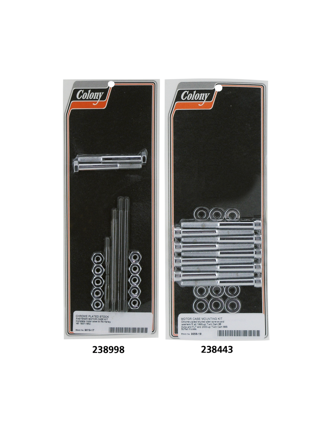 These complete motor case kits from Colony contain all the necessary hardware to bolt Harley crankcases together. A rebuild job can only be as good as the bolts that hold it together, so these are no universal "fit's all" kits. Every kit is packaged for the specific application and includes washers and nuts where needed.