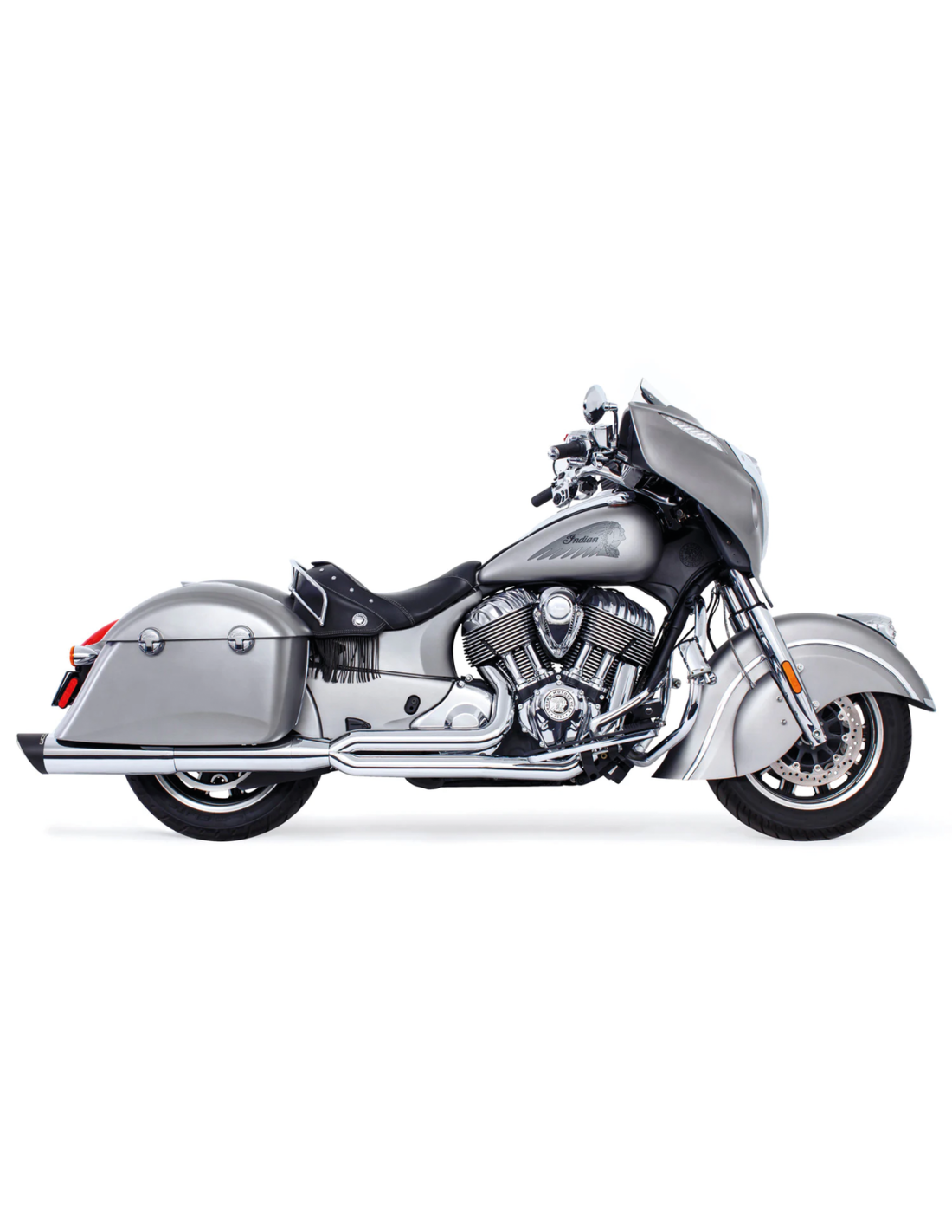 Fits 2014-2021 Chieftain and 2014 to present Roadmaster & Springfield, Chrome 2 into 1, black sculpted Slash Cut end cap