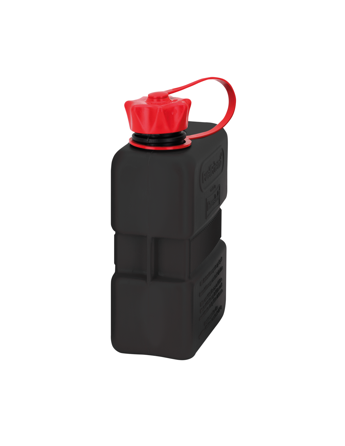 Don’t let yourself get stranded on the side of the road with an empty fuel tank! These handy fuel canisters fit easily into a saddlebag, and the smallest one will even fit a toolroll or toolbox. The 1 and 1.5 Liter versions can also be strapped against a frame or sissybar. Can also be used to store some extra oil in. UN approved for all types of fuel and oil. A lockable outlet for use with the 1, 1.5 and 2 Liter canisters is seperately available.